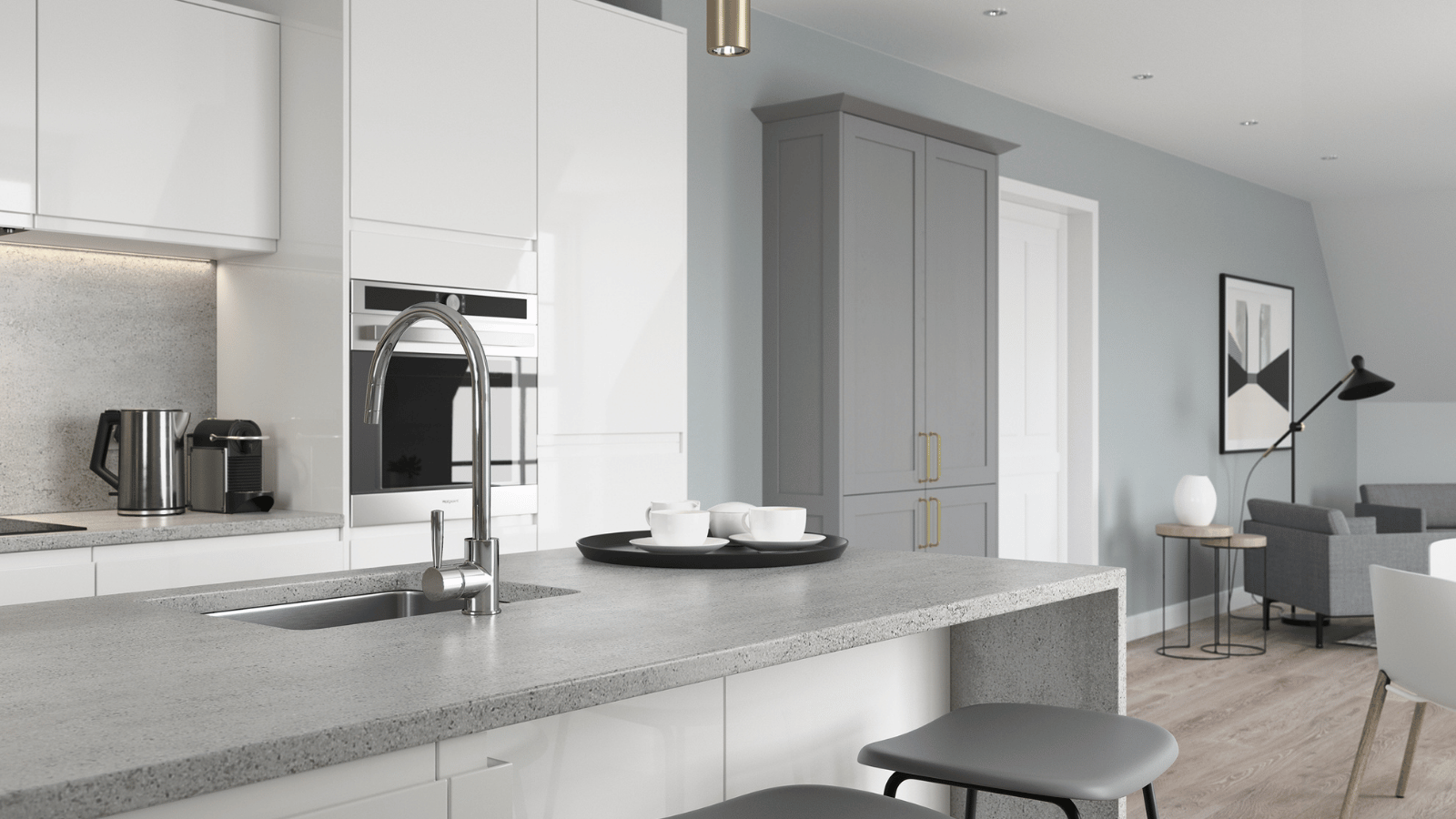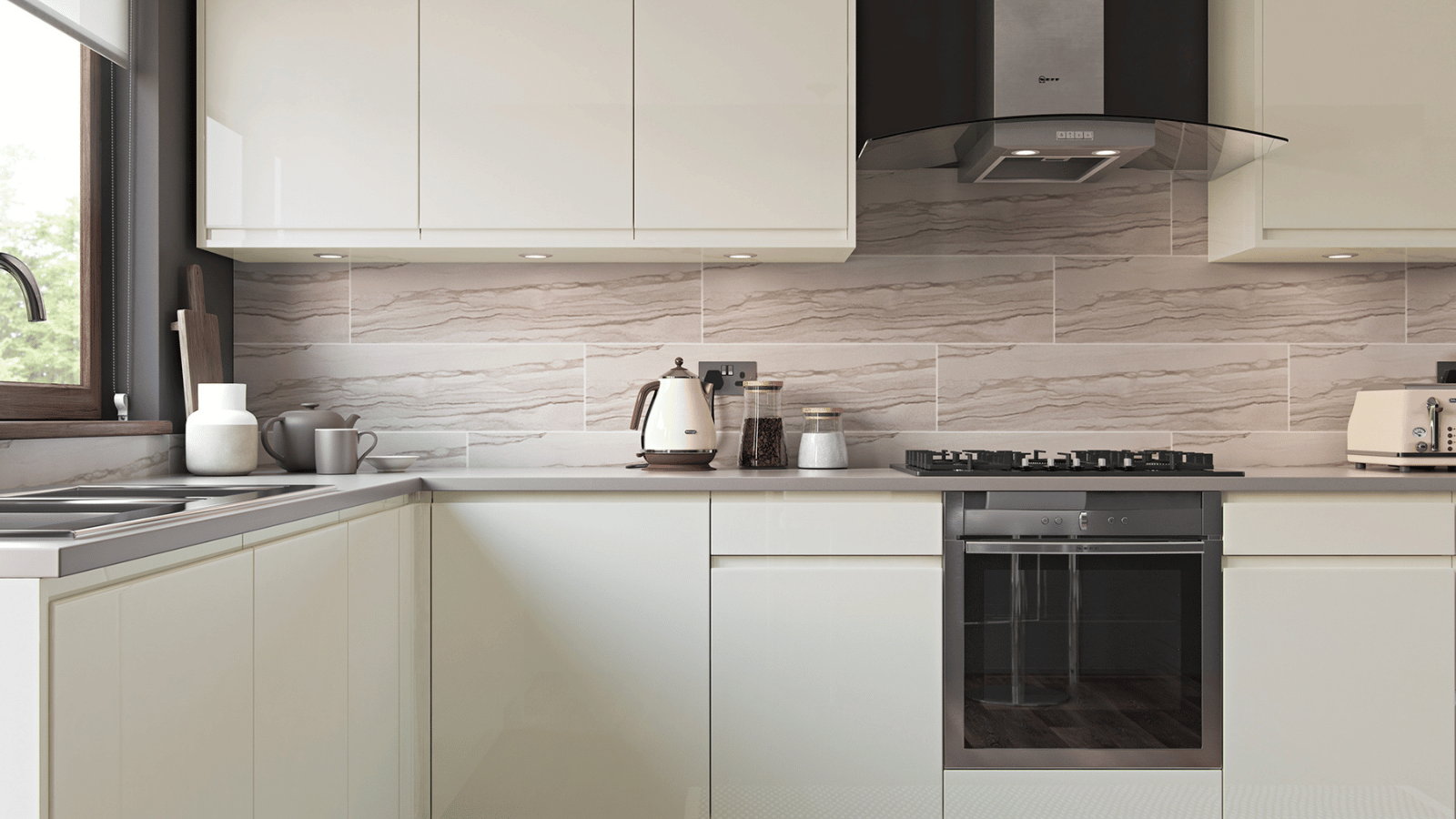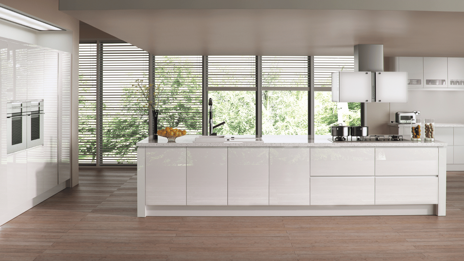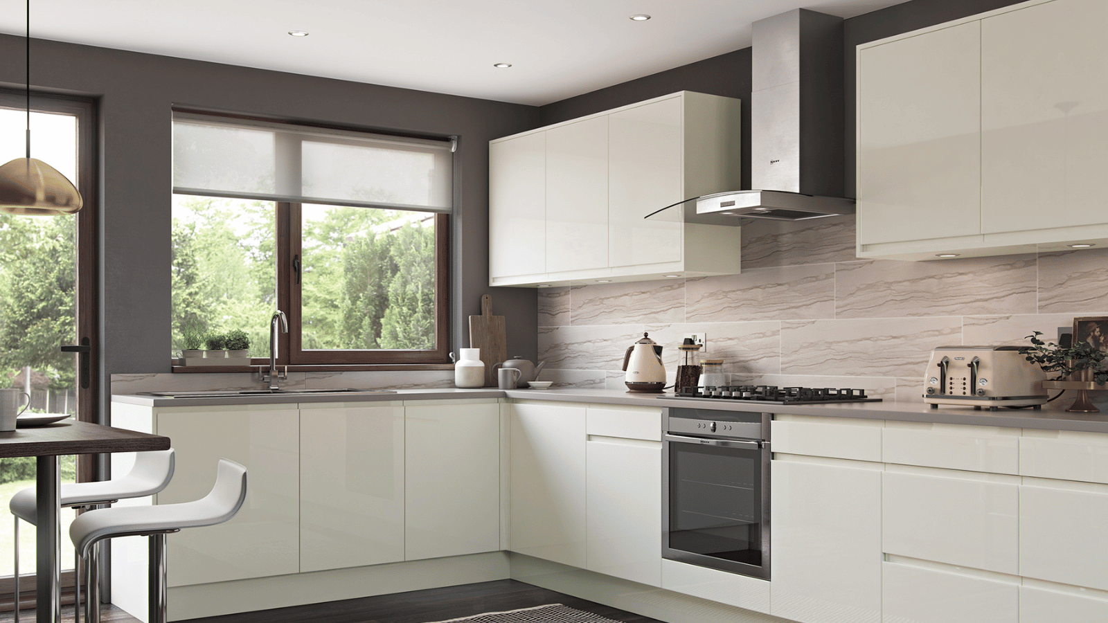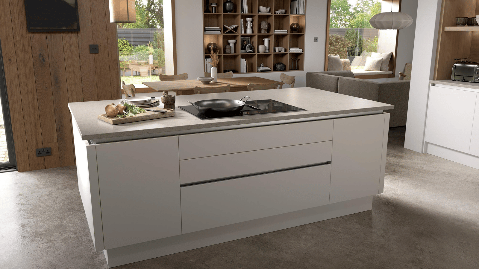 Featuring a high-gloss slab and integrated J-handle, Strada Gloss reflects light beautifully, making it a bold yet timeless choice for bright, contemporary spaces.