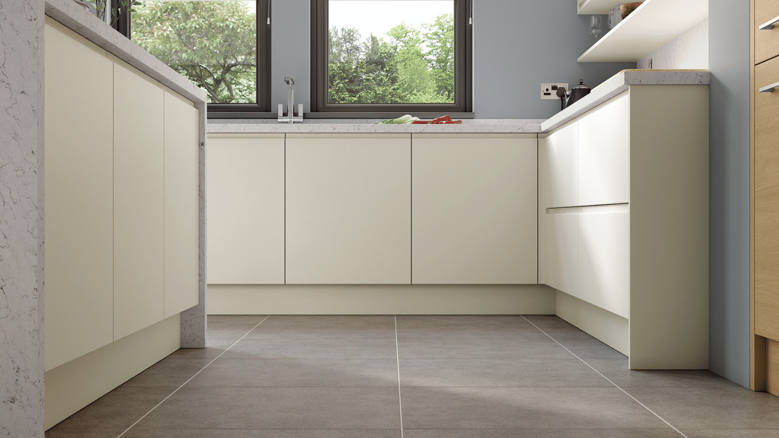 Our Handleless Kitchen Range is designed for those who love clean lines and contemporary simplicity. With integrated J-handles and flawless finishes, this collection offers a minimalist look with practical style ideal for modern homes across Northern Ireland.
