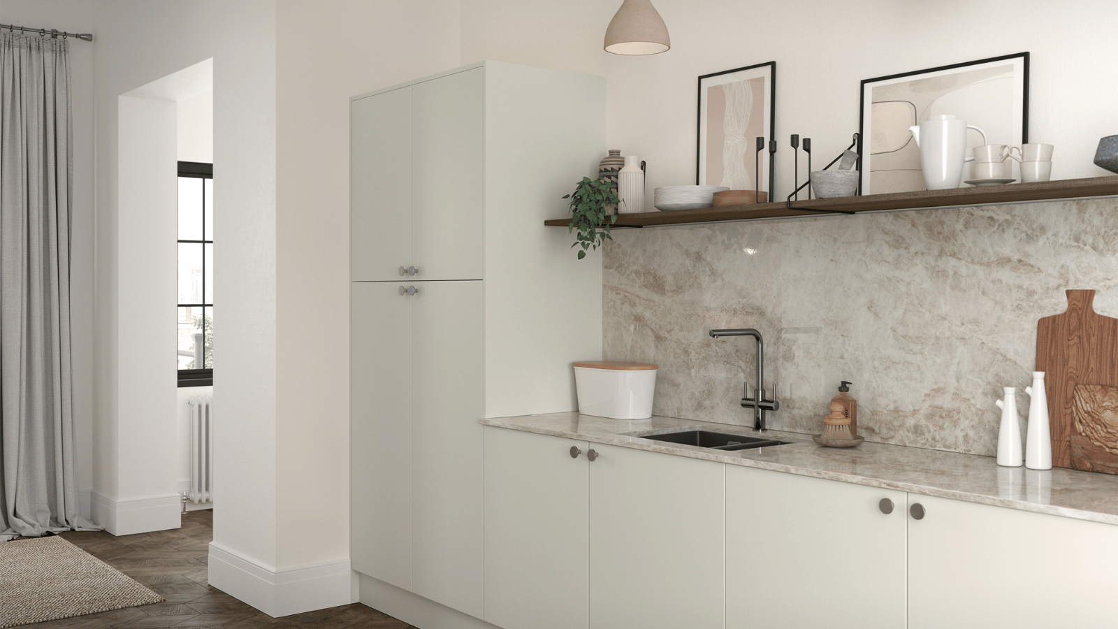 With a high-gloss slab front, Zola Gloss creates a mirror-like finish that enhances depth and light. Ideal for kitchens where you want sleekness with shine.